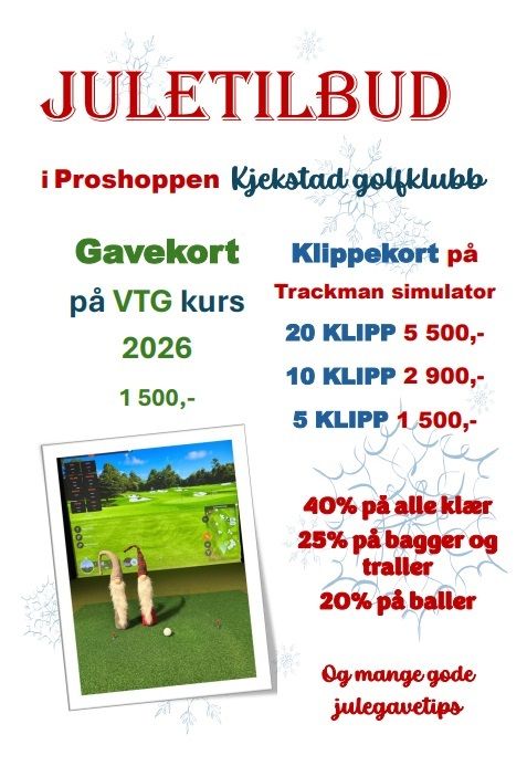 Vintertrening i SvingstudioGolfsesongen trenger ikke ta pause! Hos Kjekstad GK kan du trene, spille og utvikle spillet ditt hele vinteren i vårt svingstudio med TrackMan – uansett nivå og alder.